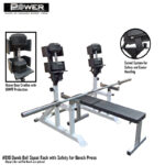 Our new #818 Dumbbell / Bench Press Stand with Safetyย is a versatile unit that allows for a dumbbell and bench press workout in one bench. Packed with thoughtful features such as adjustable height and width, swivel cradles with UHMW protection โ the new #818 is a must-have rack for your gym! Perform outstanding squats, bicep curls, upright rows, or bench presses. Throw in a Flat or Incline Bench and you are good to go